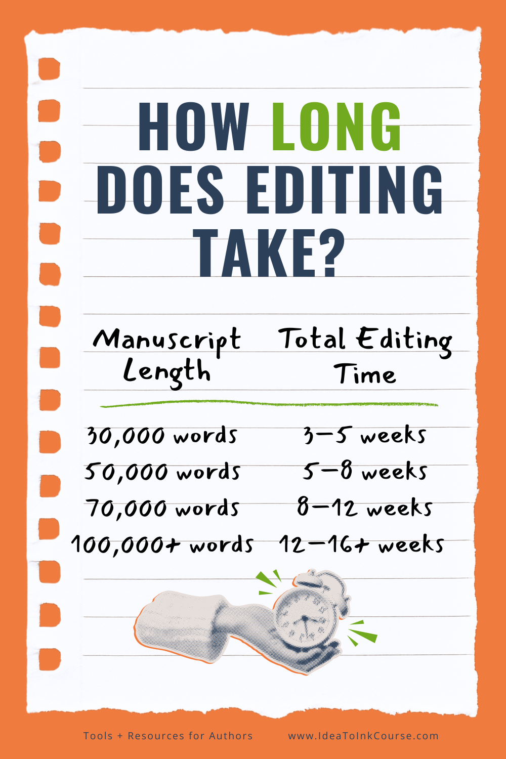 Editing takes time. Do not sabotage your own book. Refer to the chart above and build in enough time for your editors to comfortably complete their work and send it back to you before your publishing date.
